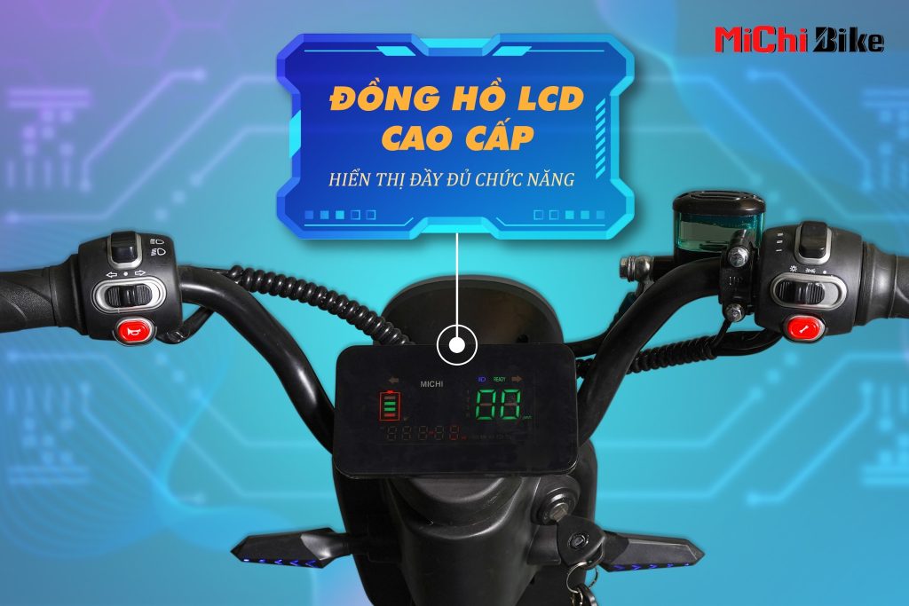 Đồng hồ hiện thị rõ nét những thông số khi xe vận hành như quãng đường, vận tốc, mức pin, hay hiện thị lỗi 1 số bộ phận… giúp người điều khiển dễ dàng nhận biết tình trạng của xe để kiểm tra và khắc phục lỗi, đảm bảo an toàn cho xe và người điều khiển.