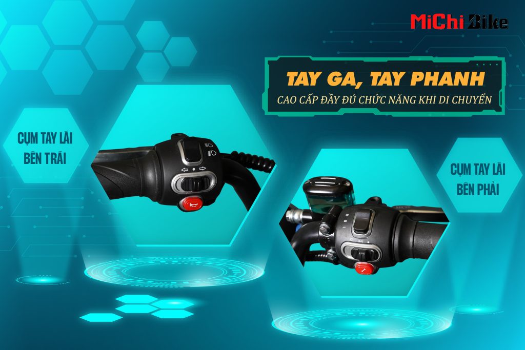 Tay ga được trang bị 3 chế độ (1-2-3) đi chậm, trung bình, đi nhanh tiện dụng hơn rất nhiều so với các mẫu xe điện thông thường. Đặc biệt Xe có chức năng cứu hộ khi xe hỏng tay ga, chết mắt động cơ, hệ thống ngắt phanh… giúp khách hàng yên tâm khi di chuyển đến đại lý để sửa chữa mà không cần dắt bộ.