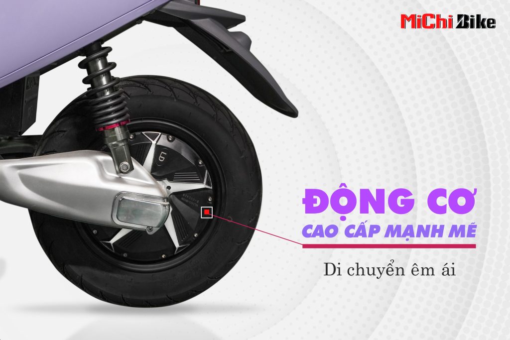 MICHI GOGO được trang bị động cơ 850W – 1000W độc quyền có thể di chuyển với vận tốc tối đa 49km/h và tối đa 80km/1 lần sạc cùng với khả năng chống nước chuẩn IP67 giúp xe lướt êm ái chẳng ngại đường xa.