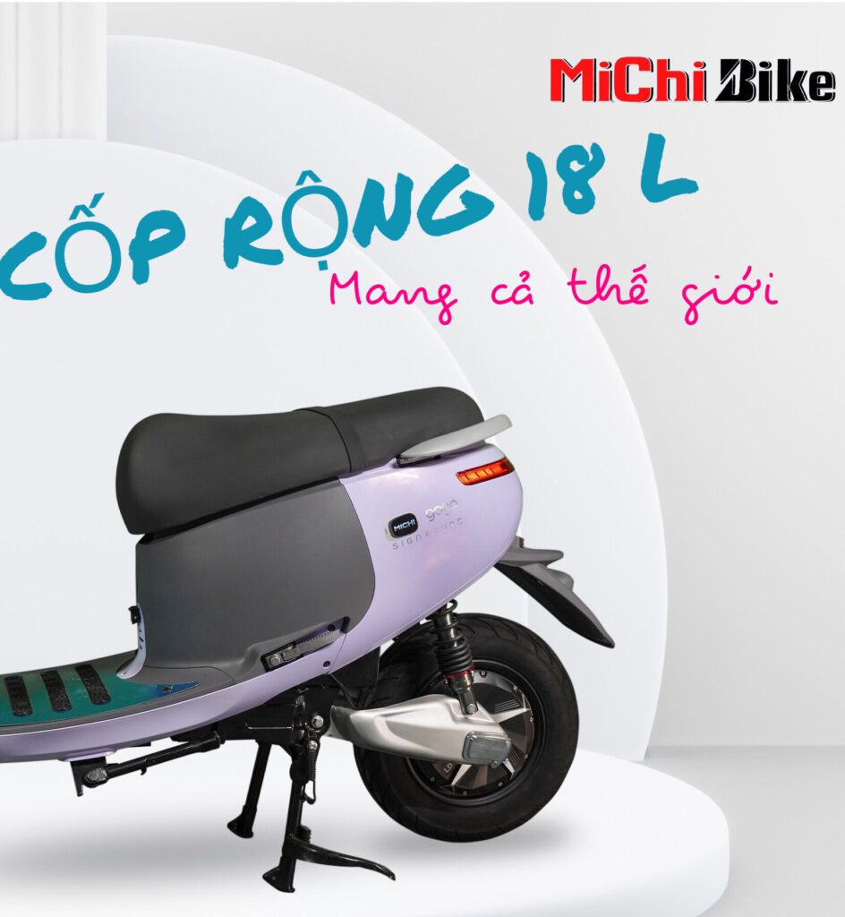 Một chi tiết nổi bật của MICHI GOGO là chiếc cốp rộng 18L rộng rãi, thoải mái phù hợp với thói quen hàng ngày của khách hàng “ MANG THEO CẢ THẾ GIỚI BÊN MÌNH ”